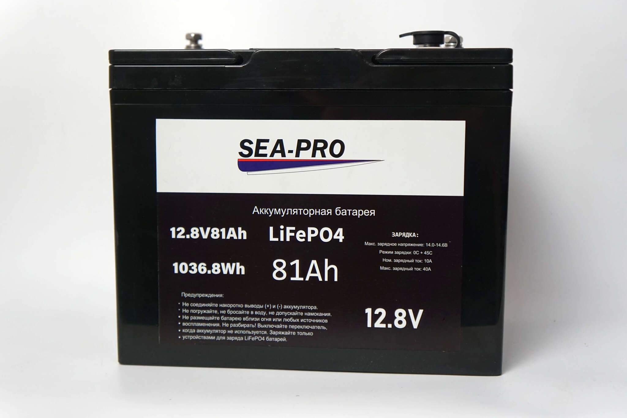 Sea-Pro LiFePO4 12,8 В 81Ач - Литий-железо-фосфатный (LiFePO4) аккумулятор глубокой разрядки, класса А и сборки завода ГЕЛ, легкий и функциональный, применяющиеся в автономных энергетических установках, электротранспорте, солнечной энергетике и других сферах, где требуется высокая цикличность работы.