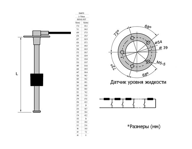 | Сигнал (диапазон) | 0-190 Ом |