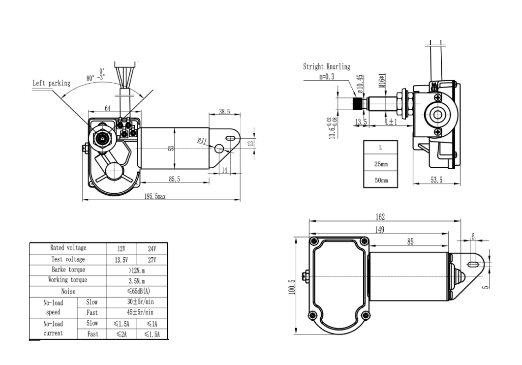 Двухскоростной усиленный электропривод стеклоочистителя с системой возврата в исходное положение.