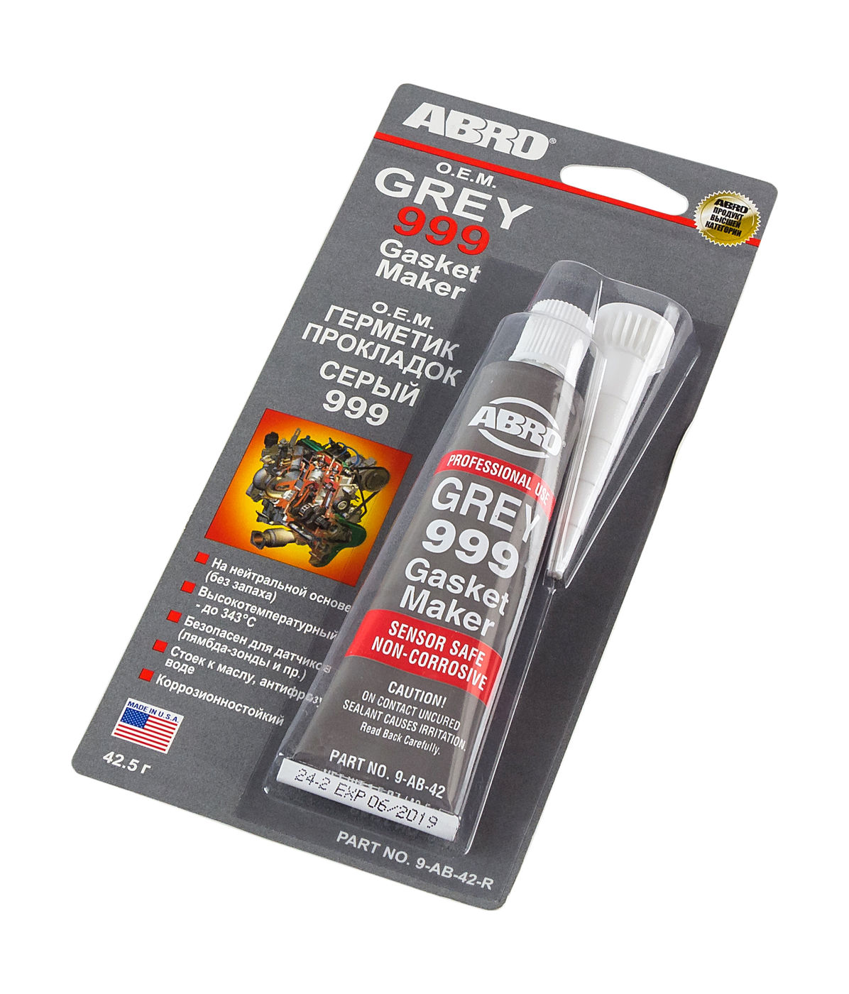 Силиконовый герметик прокладок АБРО 999 специально разработан для ремонта прокладок в двигателях японских машин, но может также использован в двигателях производства США и Европы. Идеально подходит для замены прокладок в крышке картера коробки передач, корпуса термостата, впускного коллектора, поддонов картера, водяных помп. Не разрушается под воздействием автомобильных жидкостей (за исключением бензина).