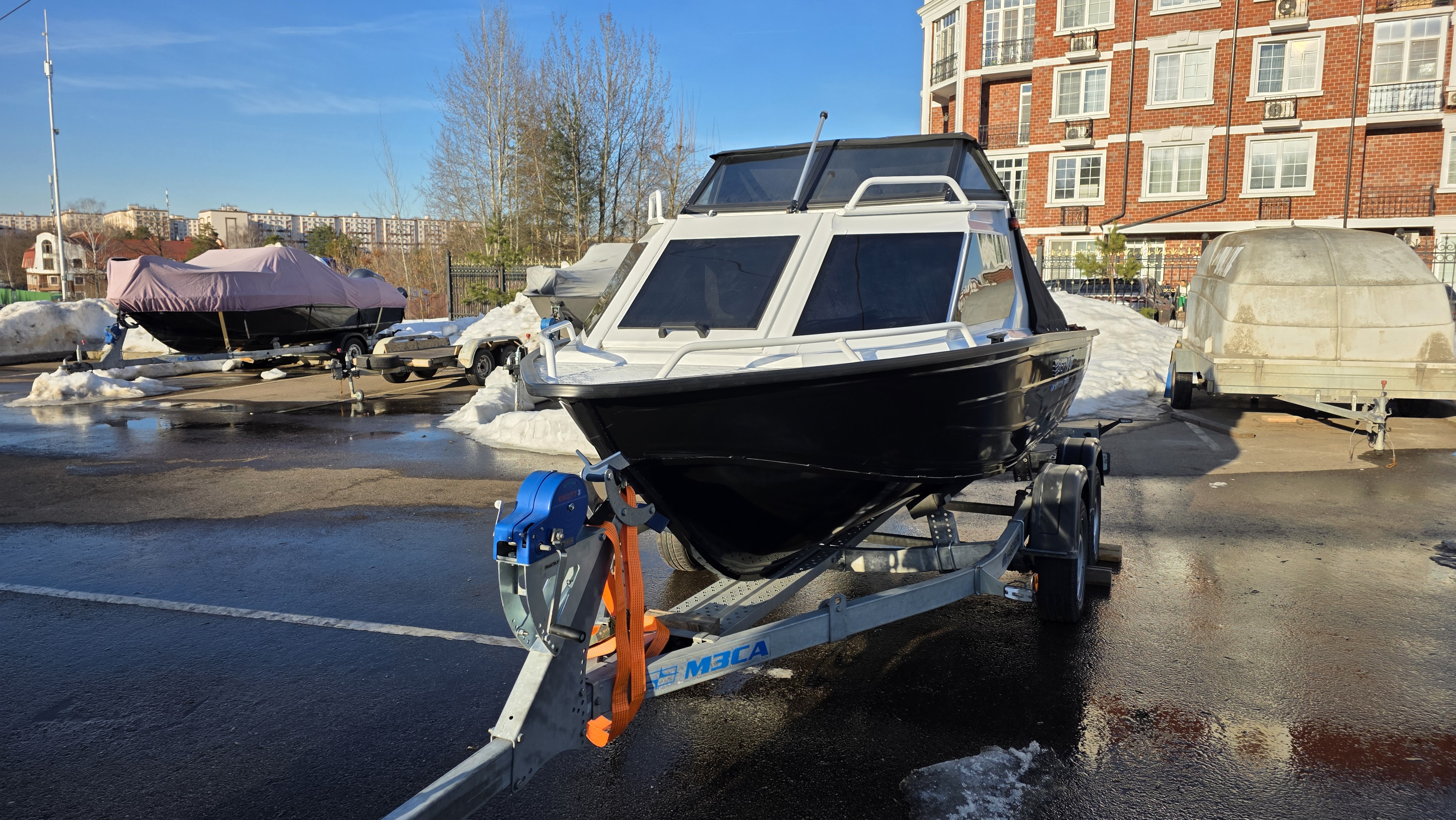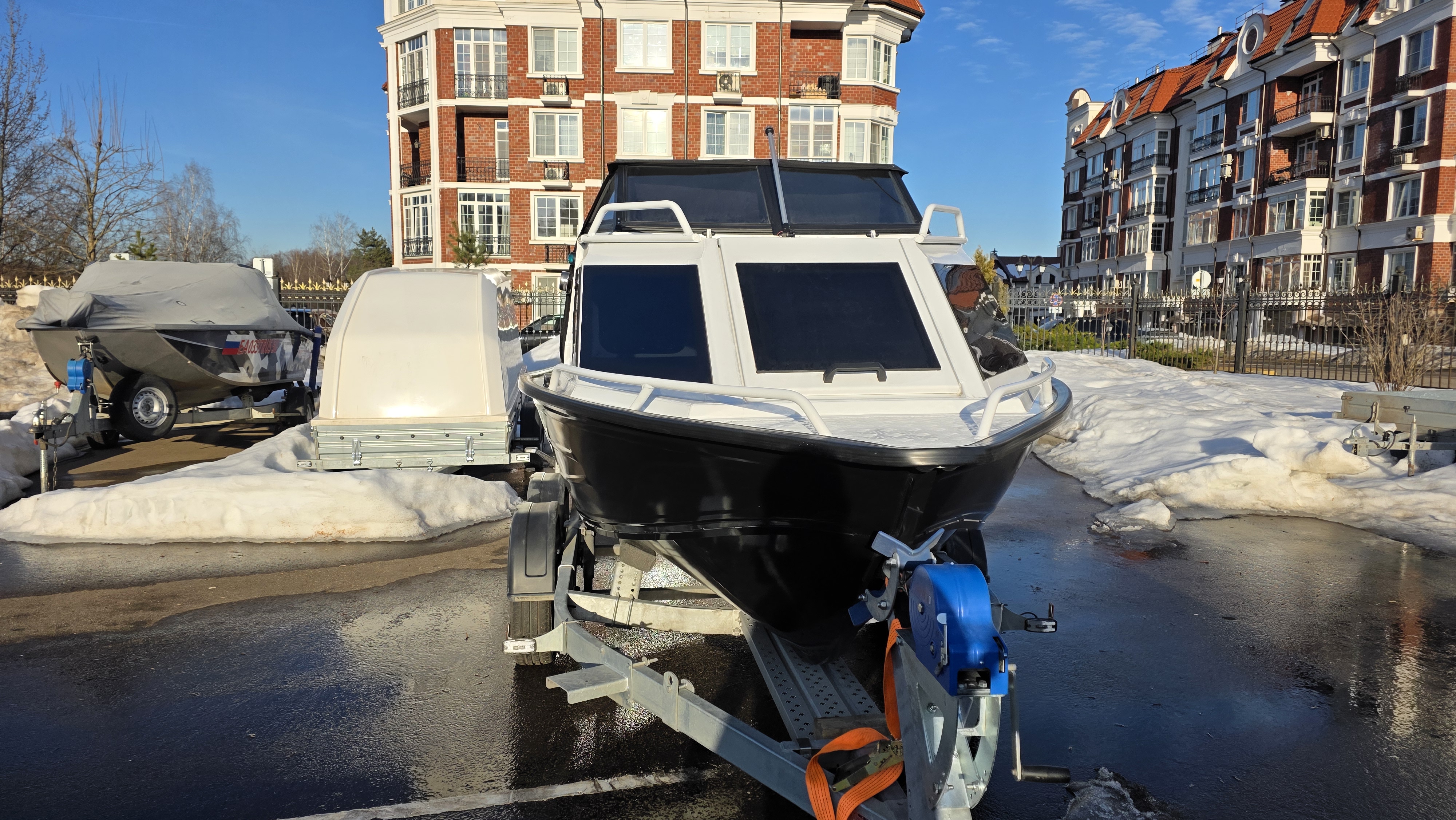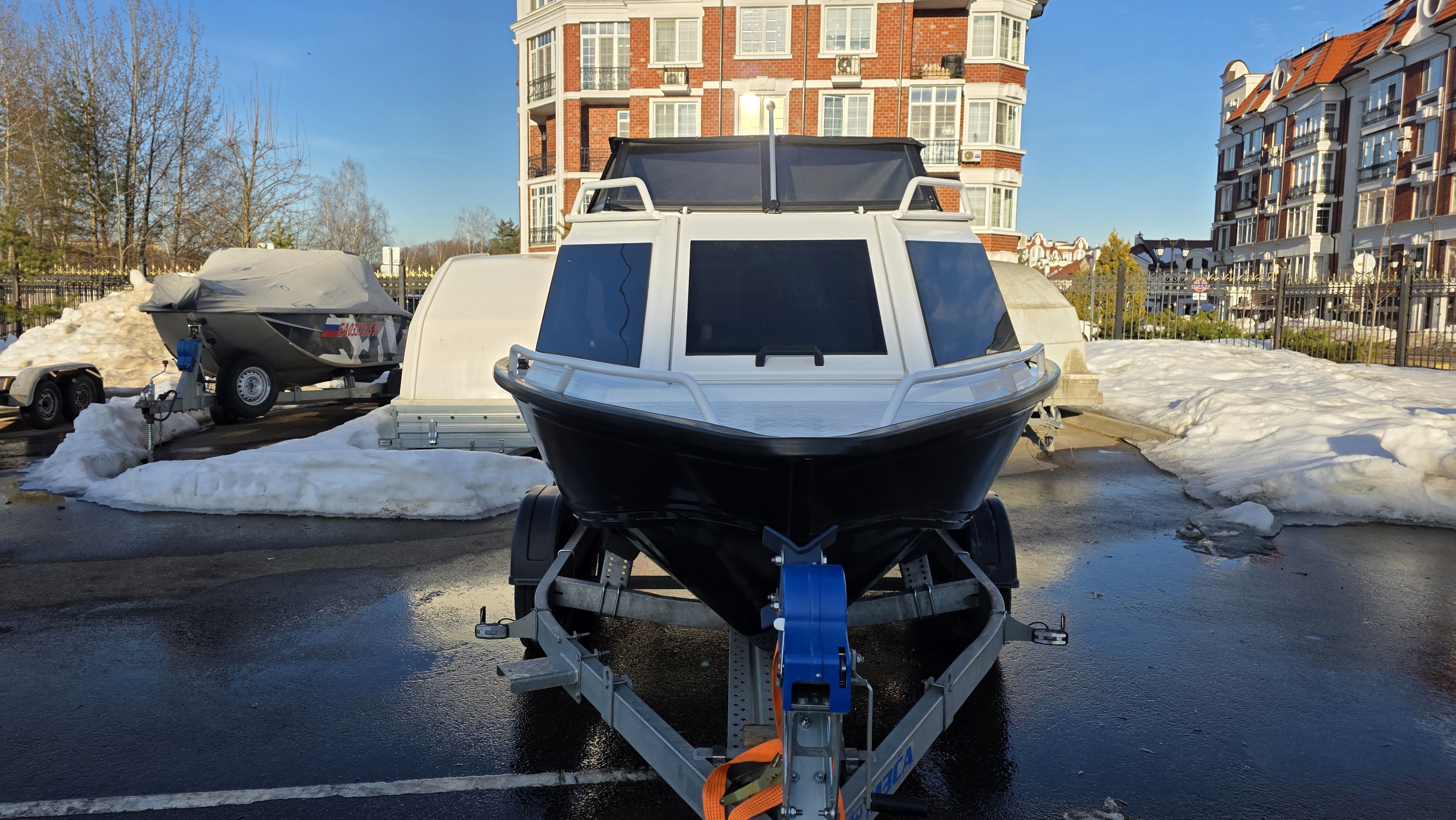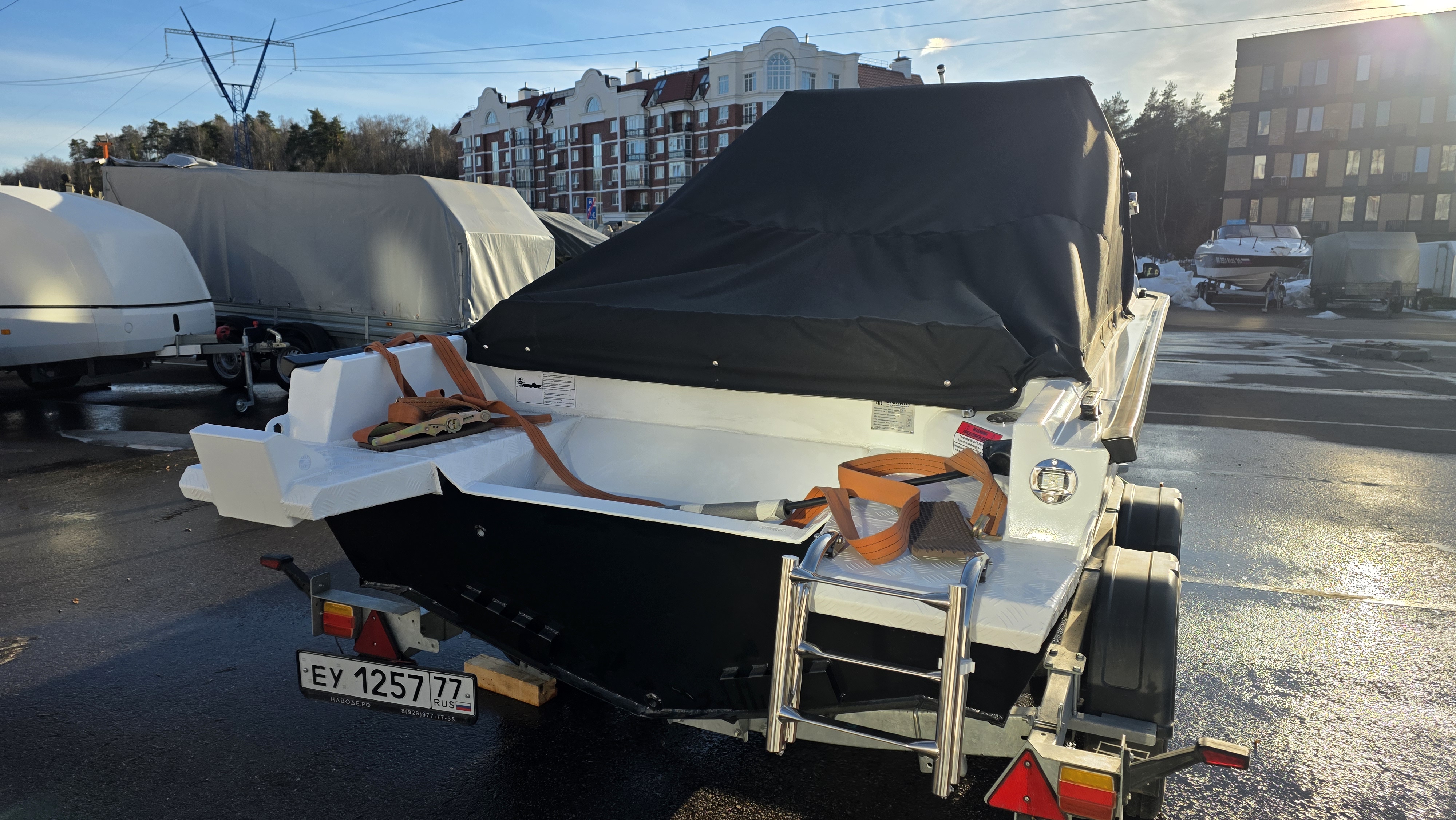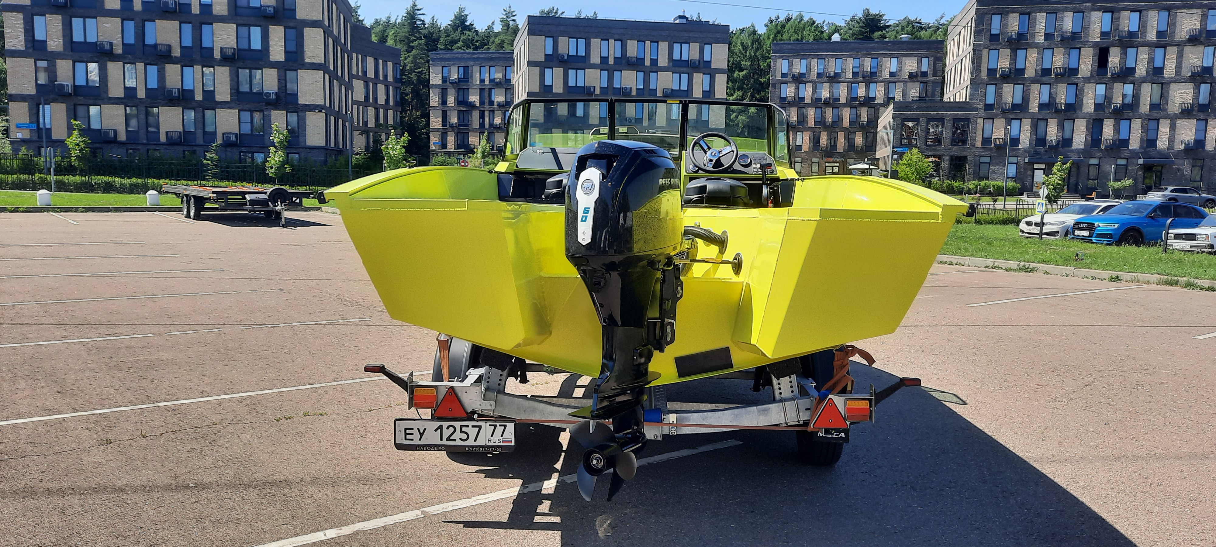 Лодочный прицеп — для перевозки лодки в собранном виде (с установленным мотором).