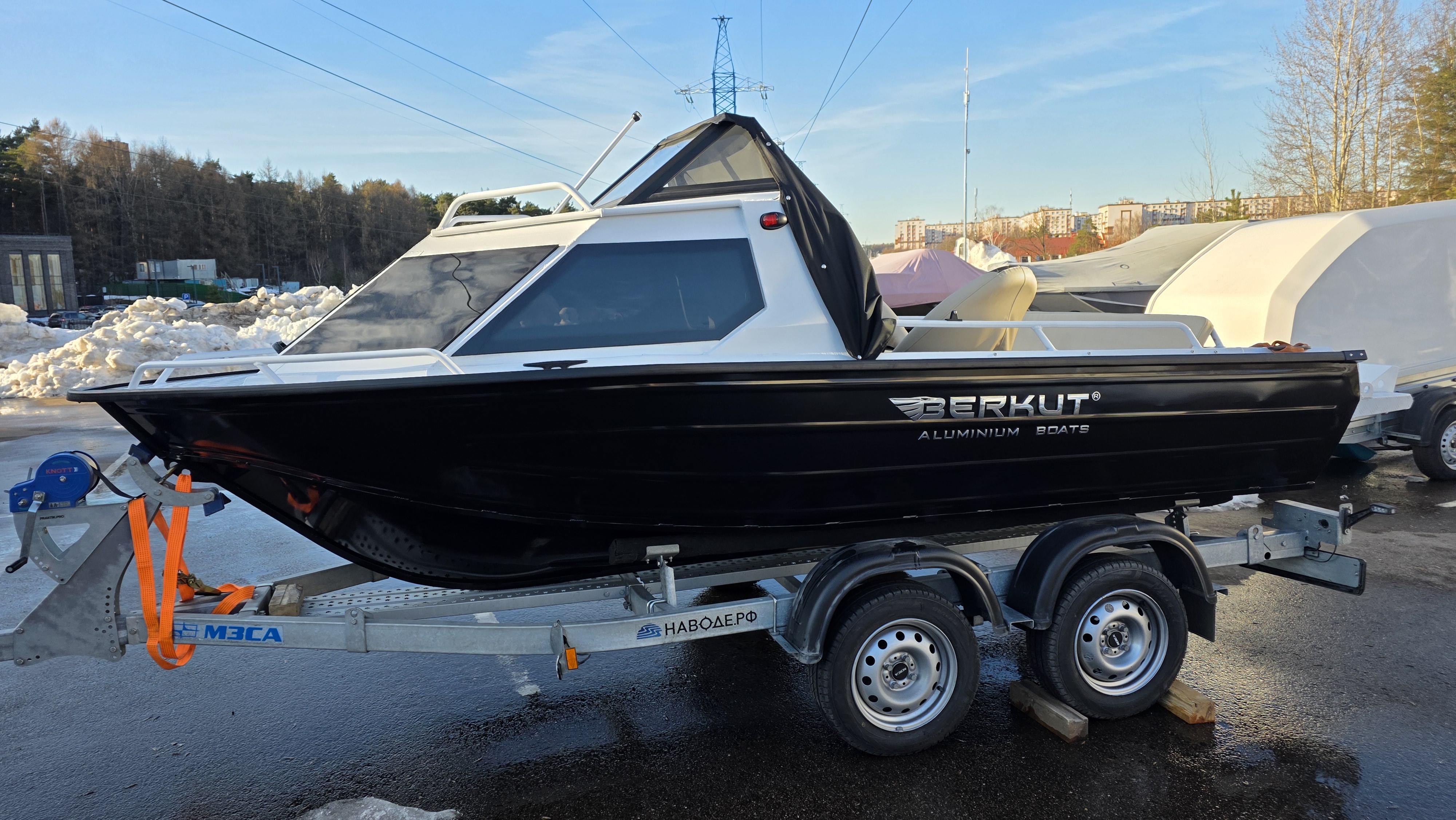 Готовый комплект: Лодка Беркут M-HT + Прицеп МЗСА 81773G.031 + Мотор Reef Rider F60FUEL Big Foot. В наличии