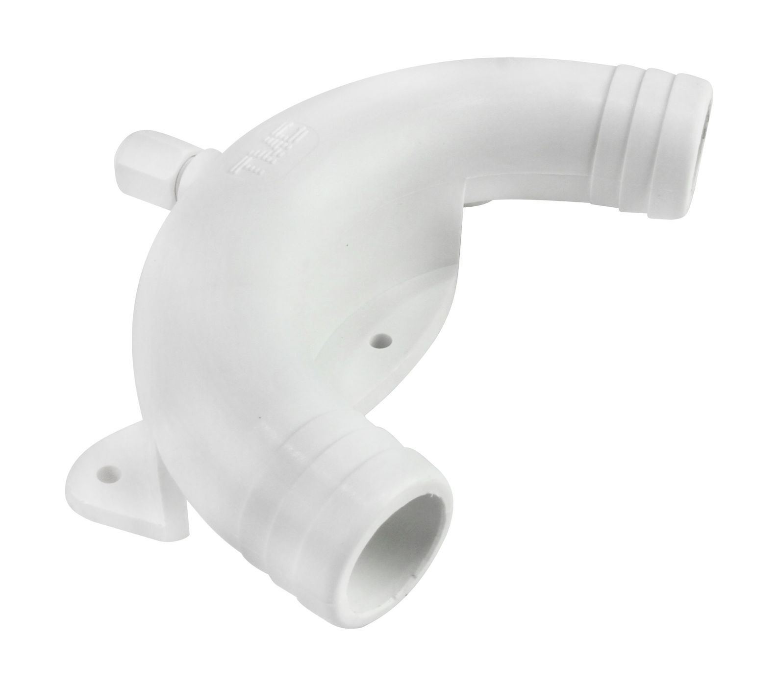 Вентилируемое пластиковое колено (вакуум-вентиль) с обратным клапаном, предназначено для предотвращения сифонного эффекта. Применяются при монтаже двигателей, генераторов, унитазов, трюмных помп установленных ниже ватерлинии.