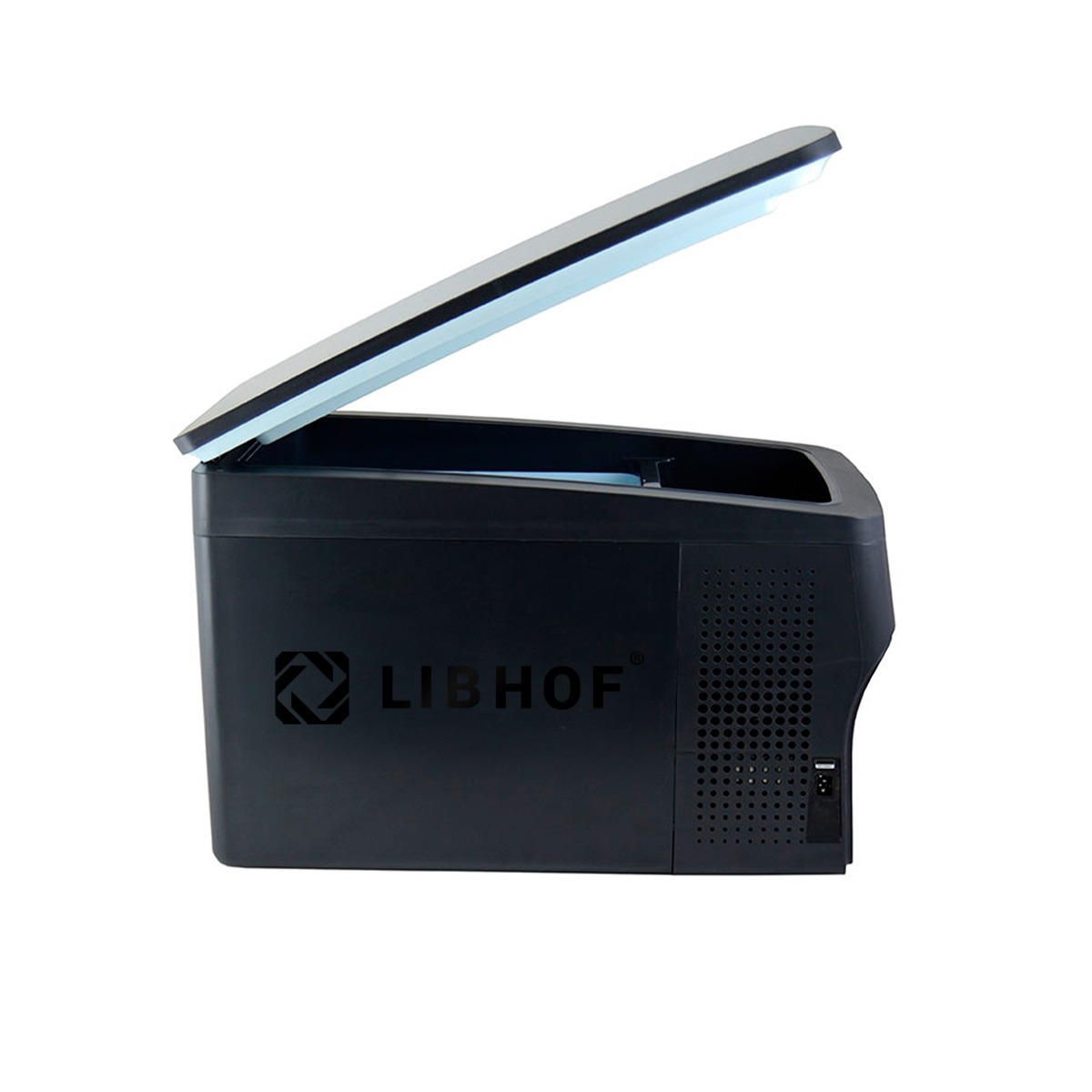 Libhof Q-36 — надежный и стильный компрессорный автомобильный холодильник, который благодаря своей конструкции может быть установлен в качестве подлокотника рядом с водительским сидением. Такая конструкция автохолодильника, будет особенно удобна для водителей автобусов и грузовых автомобилей.