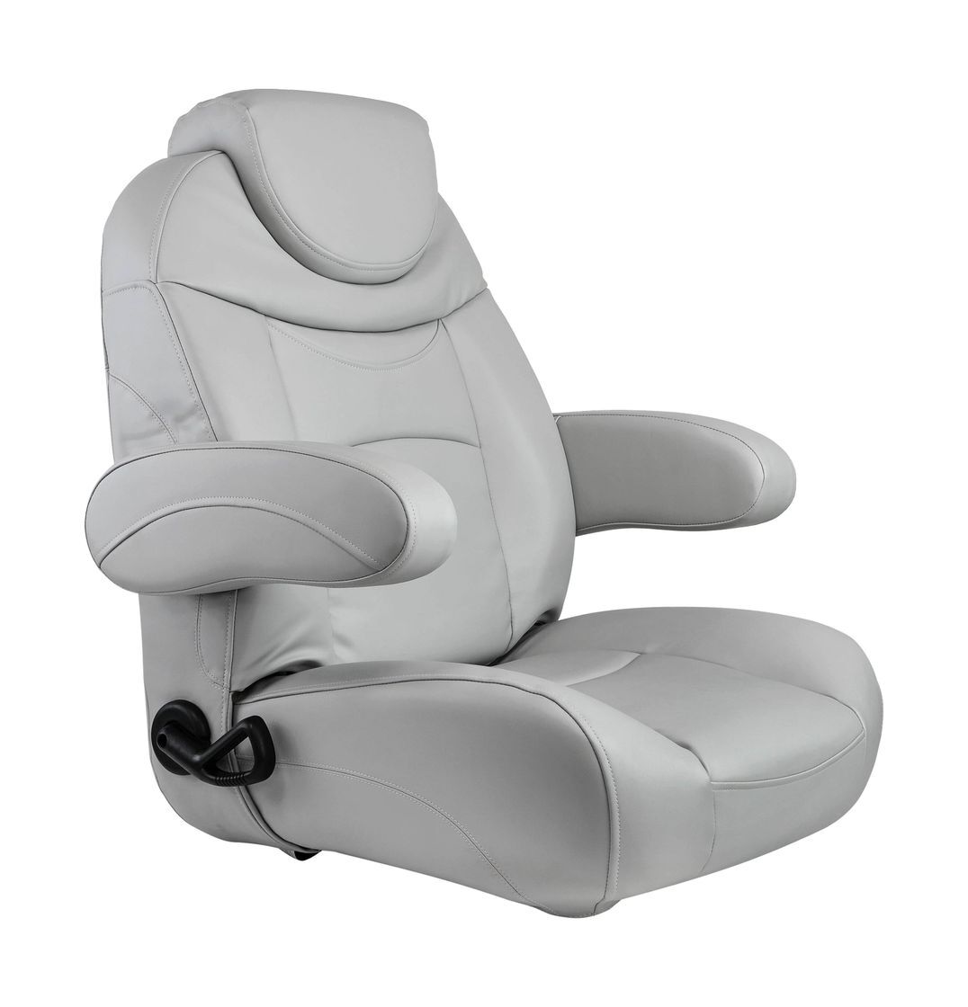 Кресло с обивкой из морского винила с регулируемой спинкой и подъёмными подлокотниками.