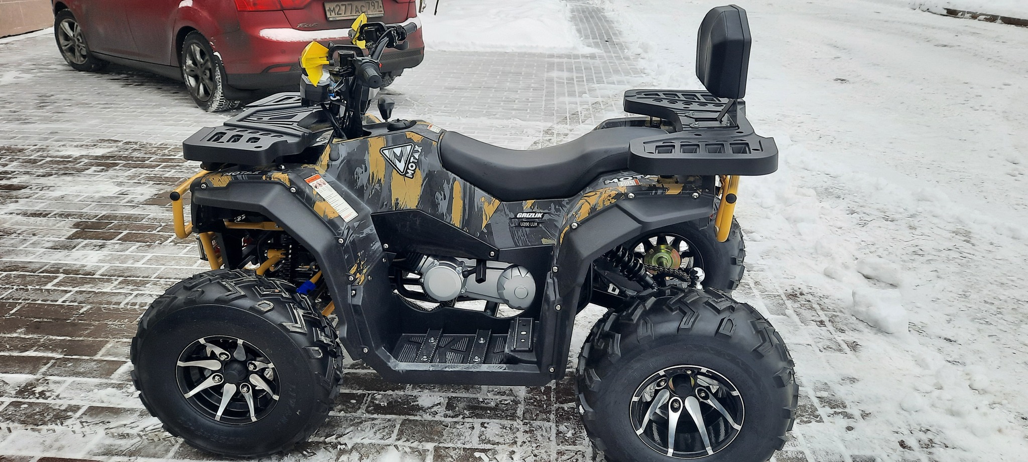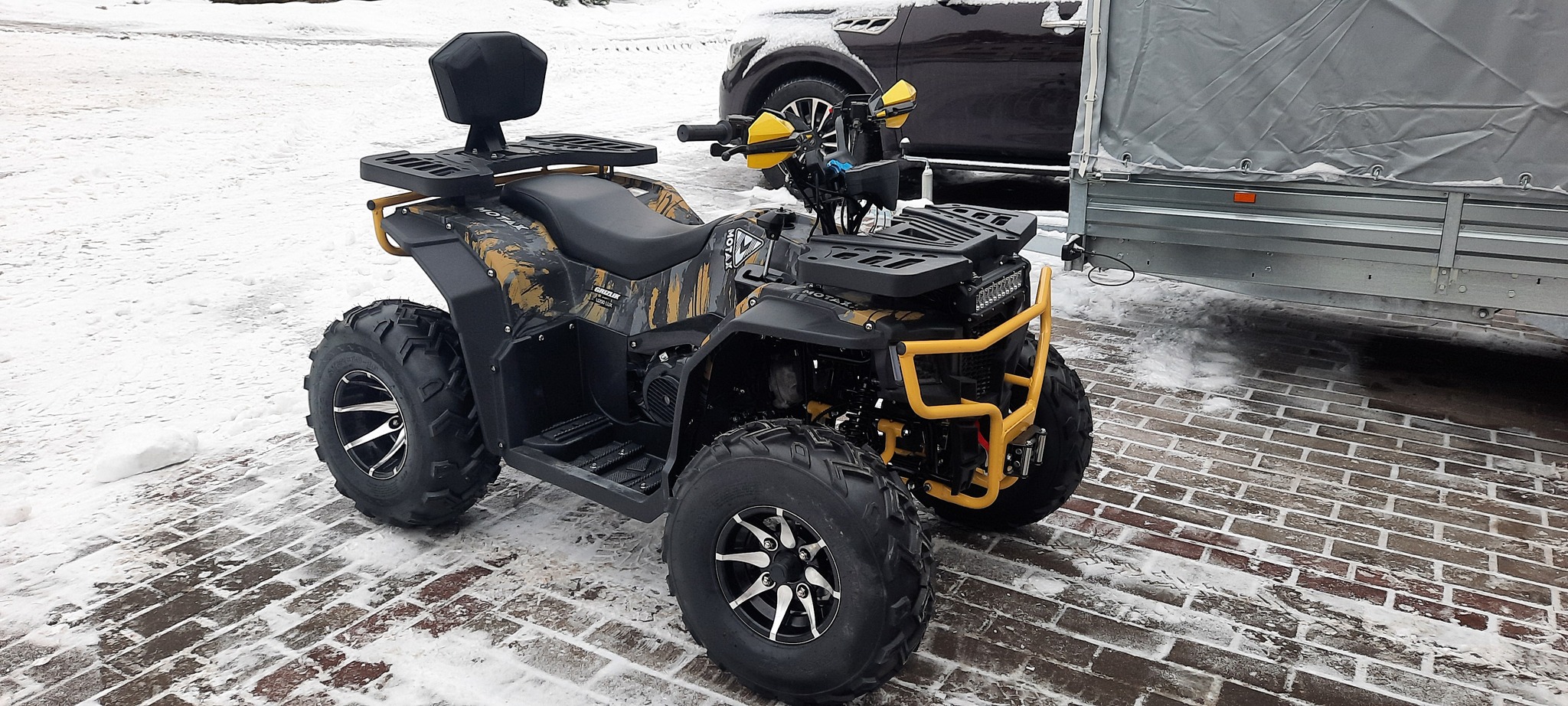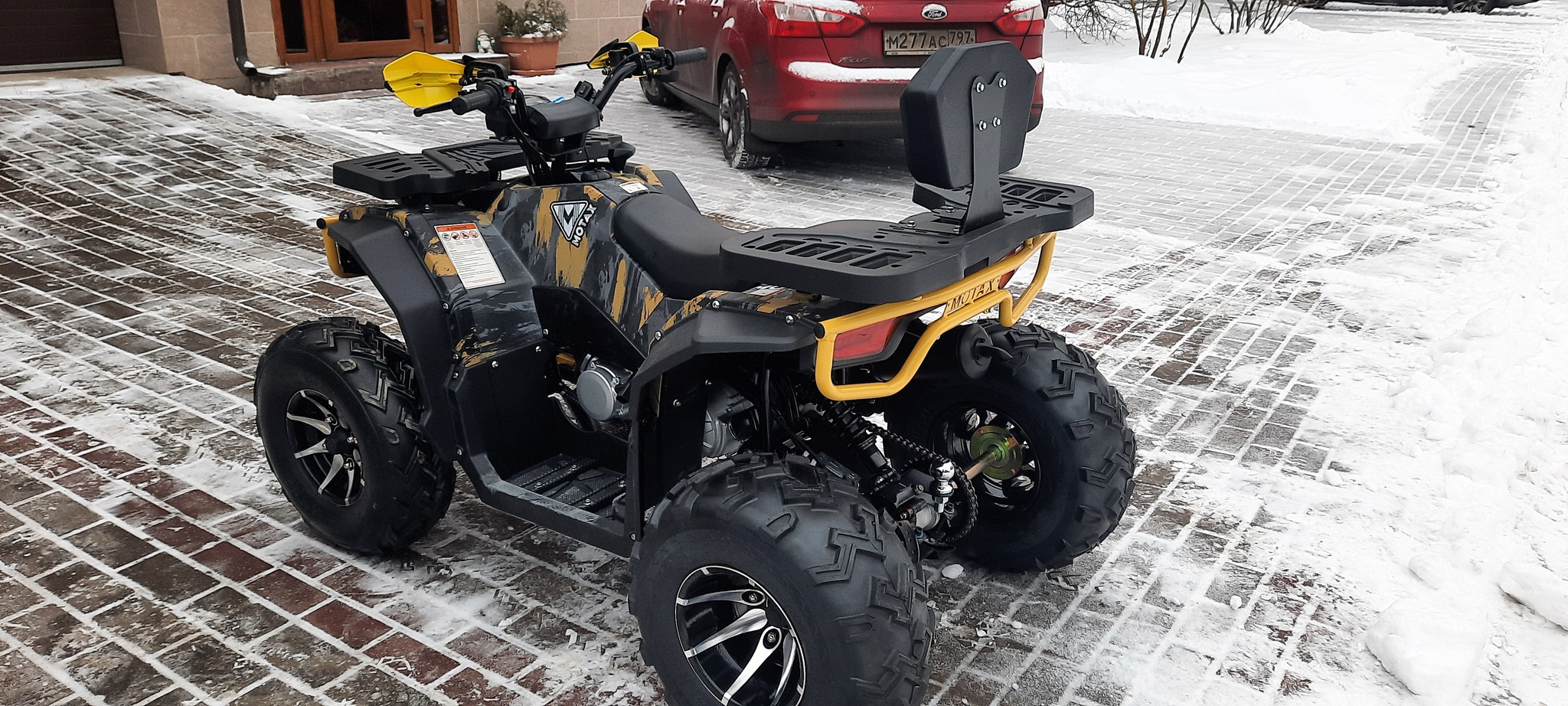 | Габаритные размеры | 148×84×76 см (в упак); 182х111х108 см ( собранный) Высота по сидению 78 см Колесная база: 123 см Дорожный просвет: 15 см Сухая масса 194 кг |