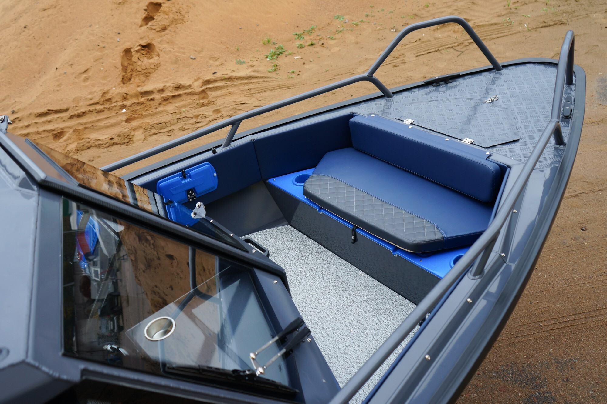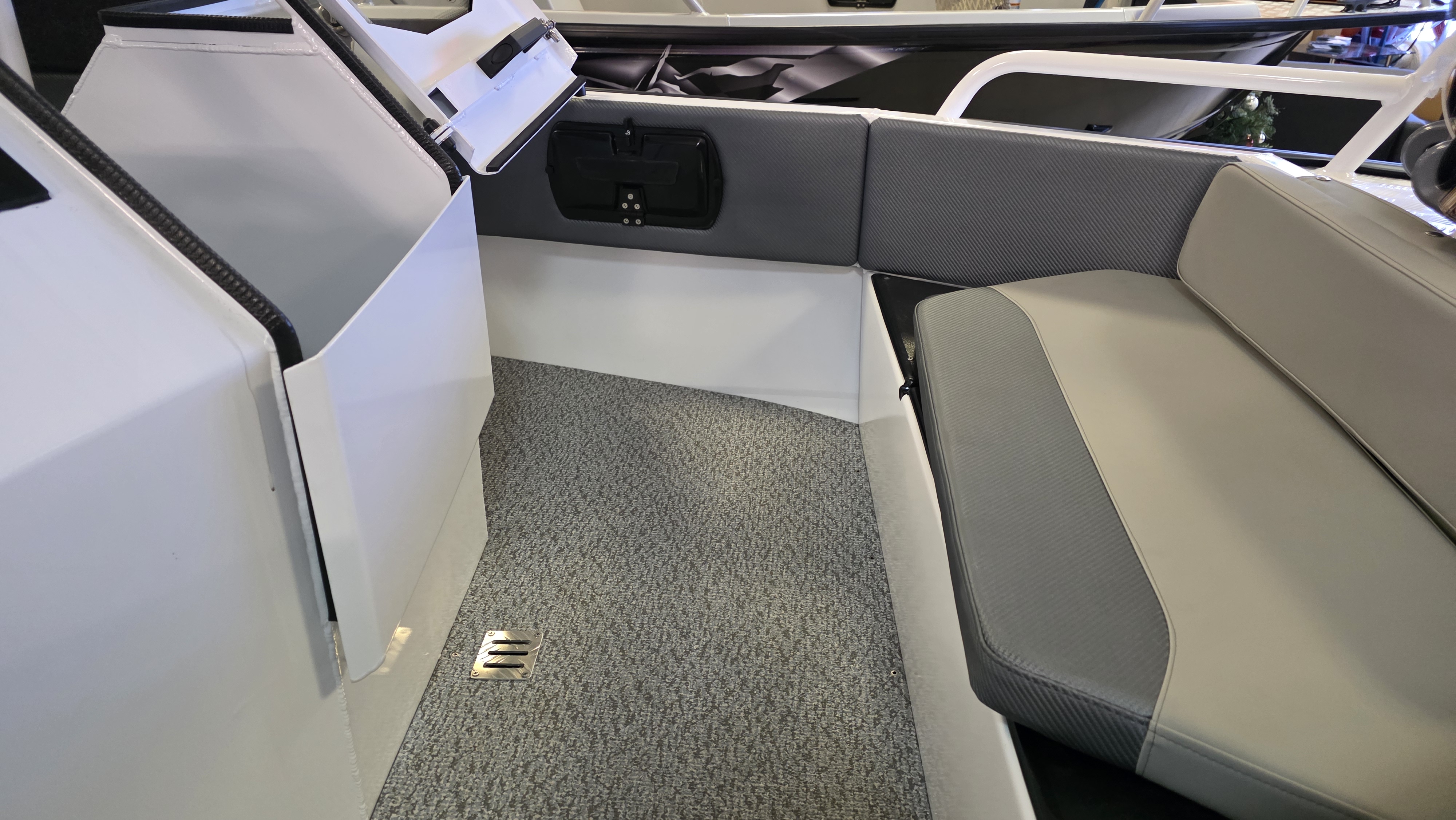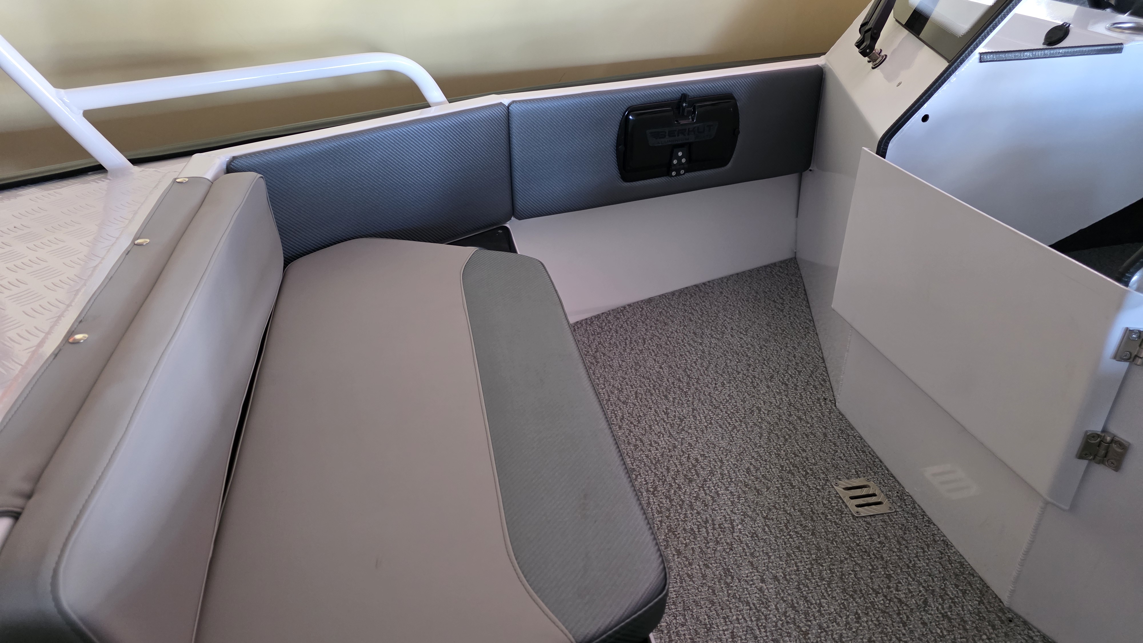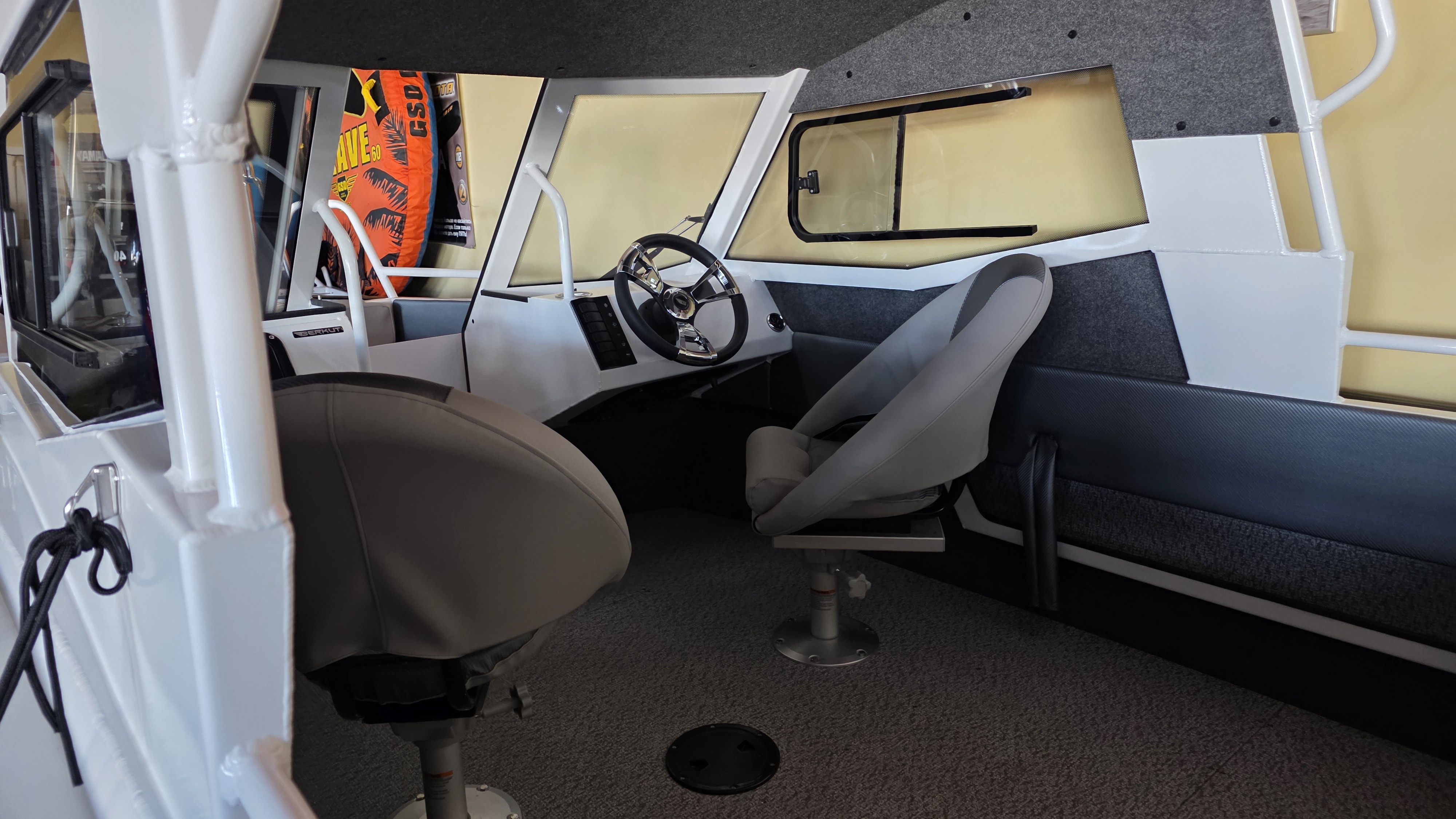 Открытый кокпит спереди лодки, отделен от основного салона алюминиевой полурубкой,