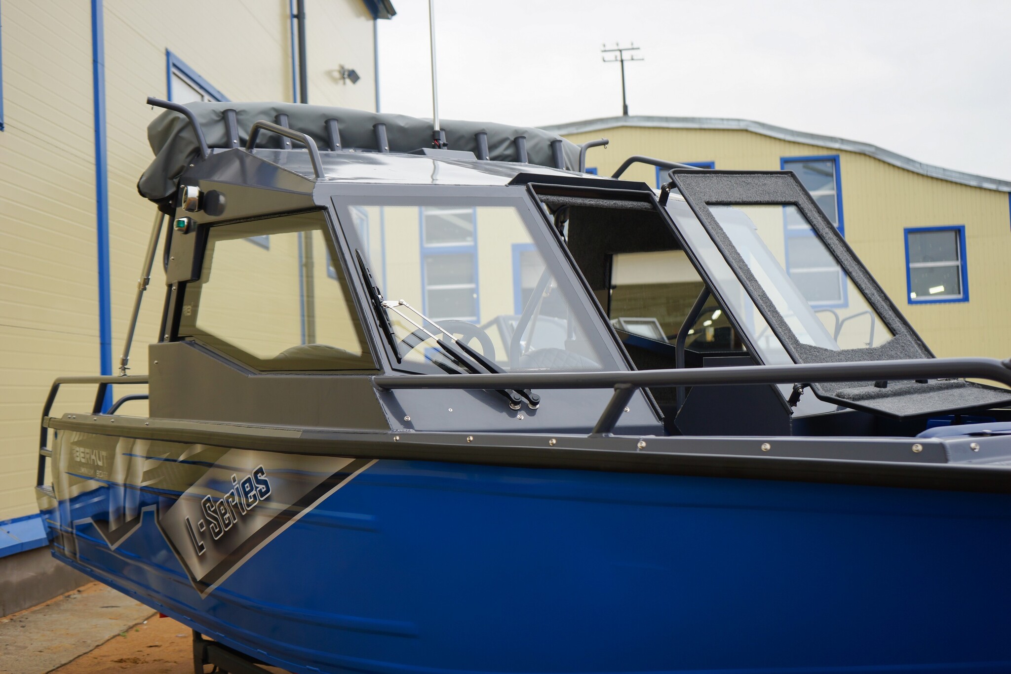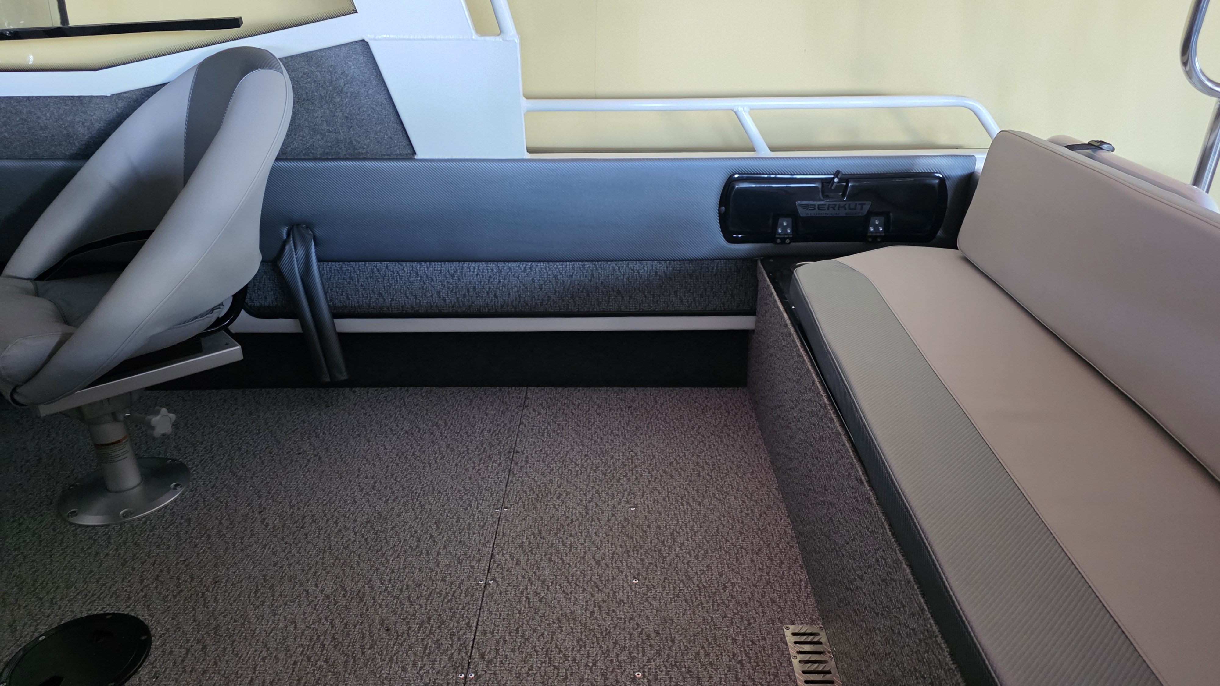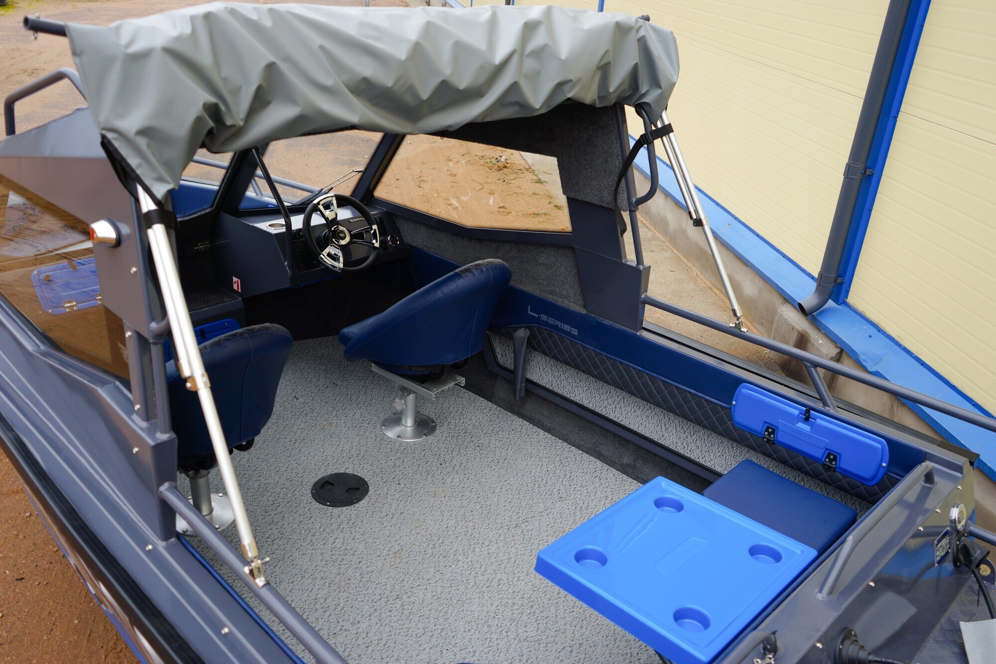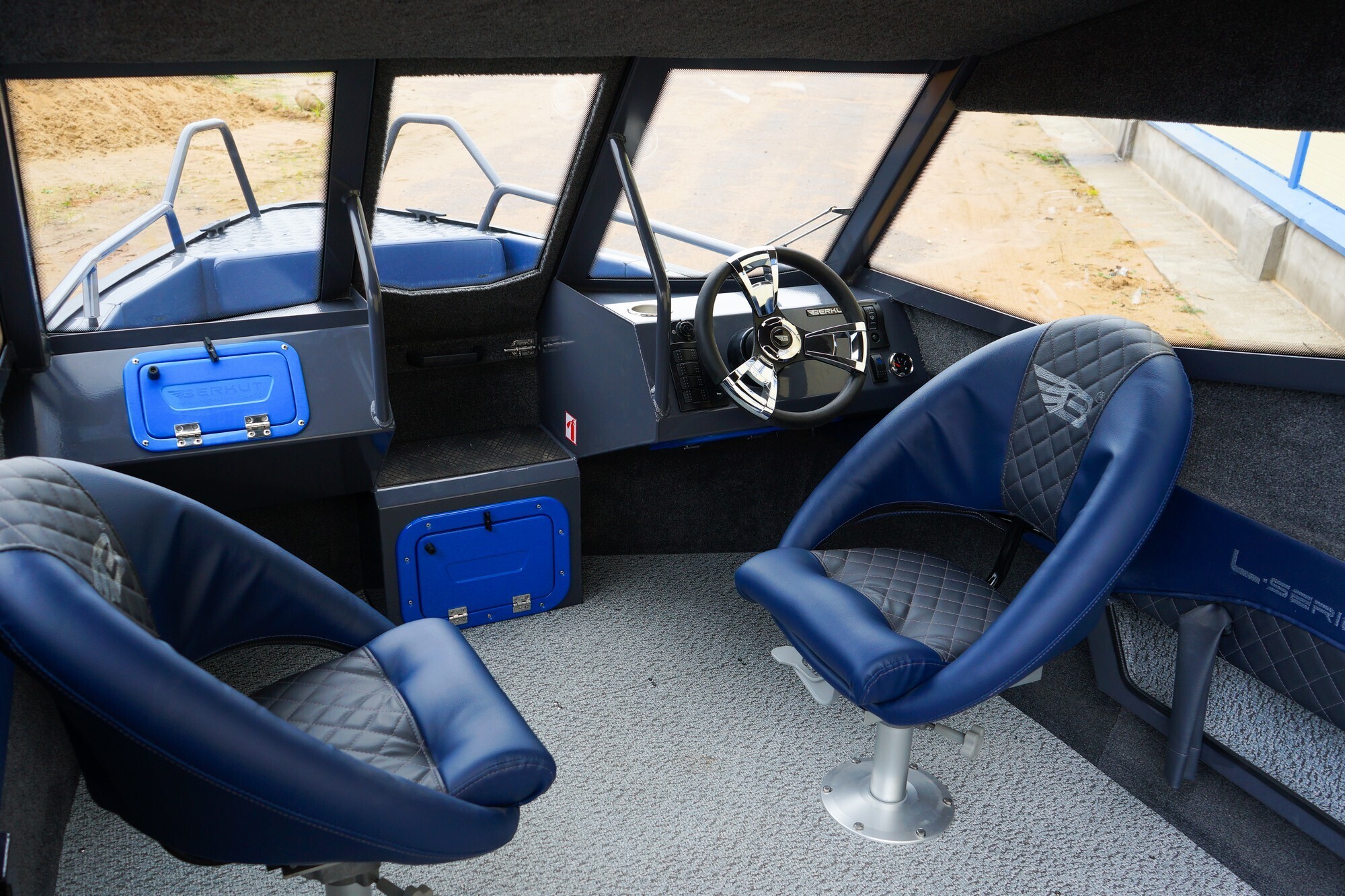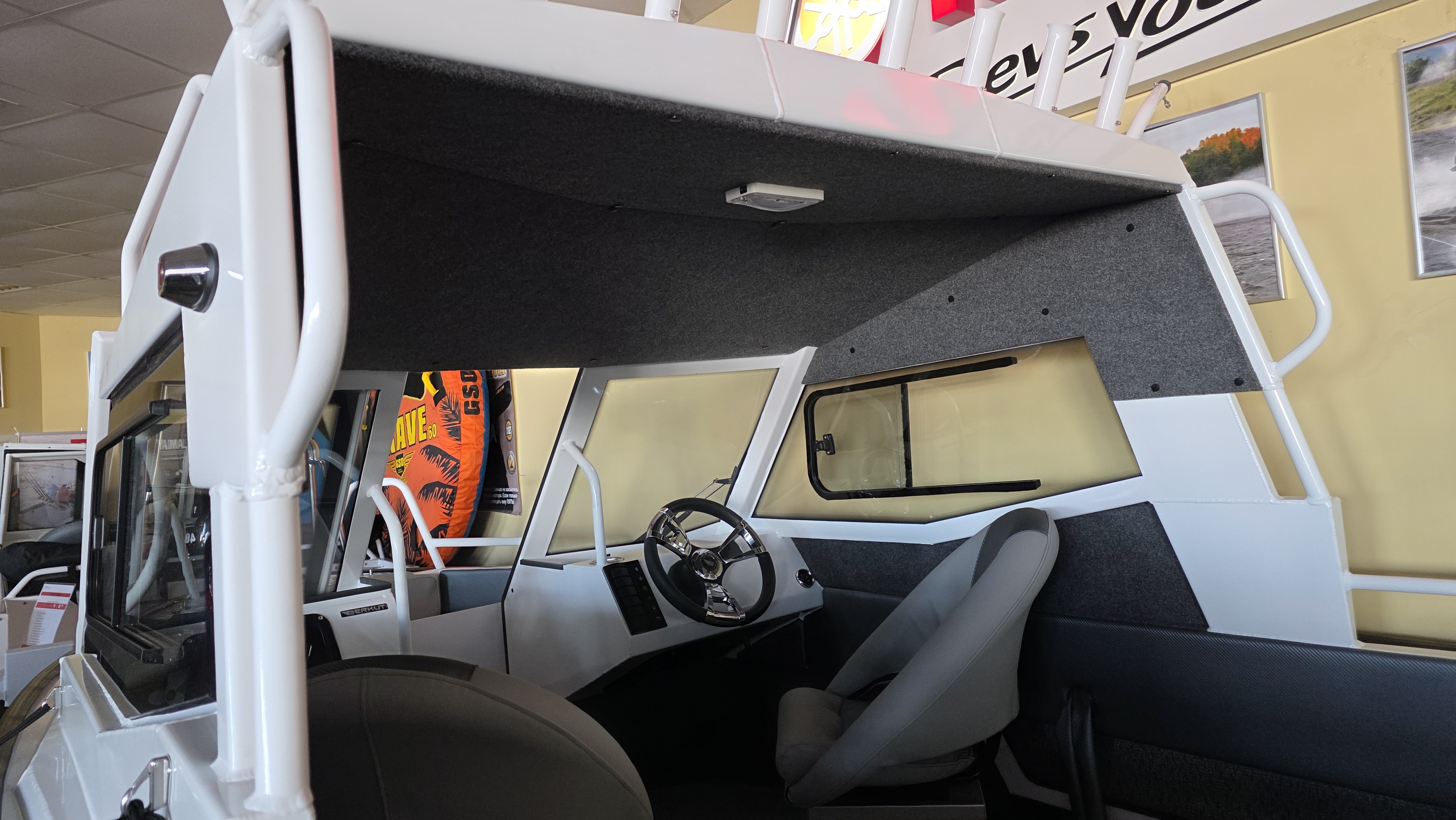 Открытый кокпит спереди лодки, отделен от основного салона алюминиевой полурубкой,
