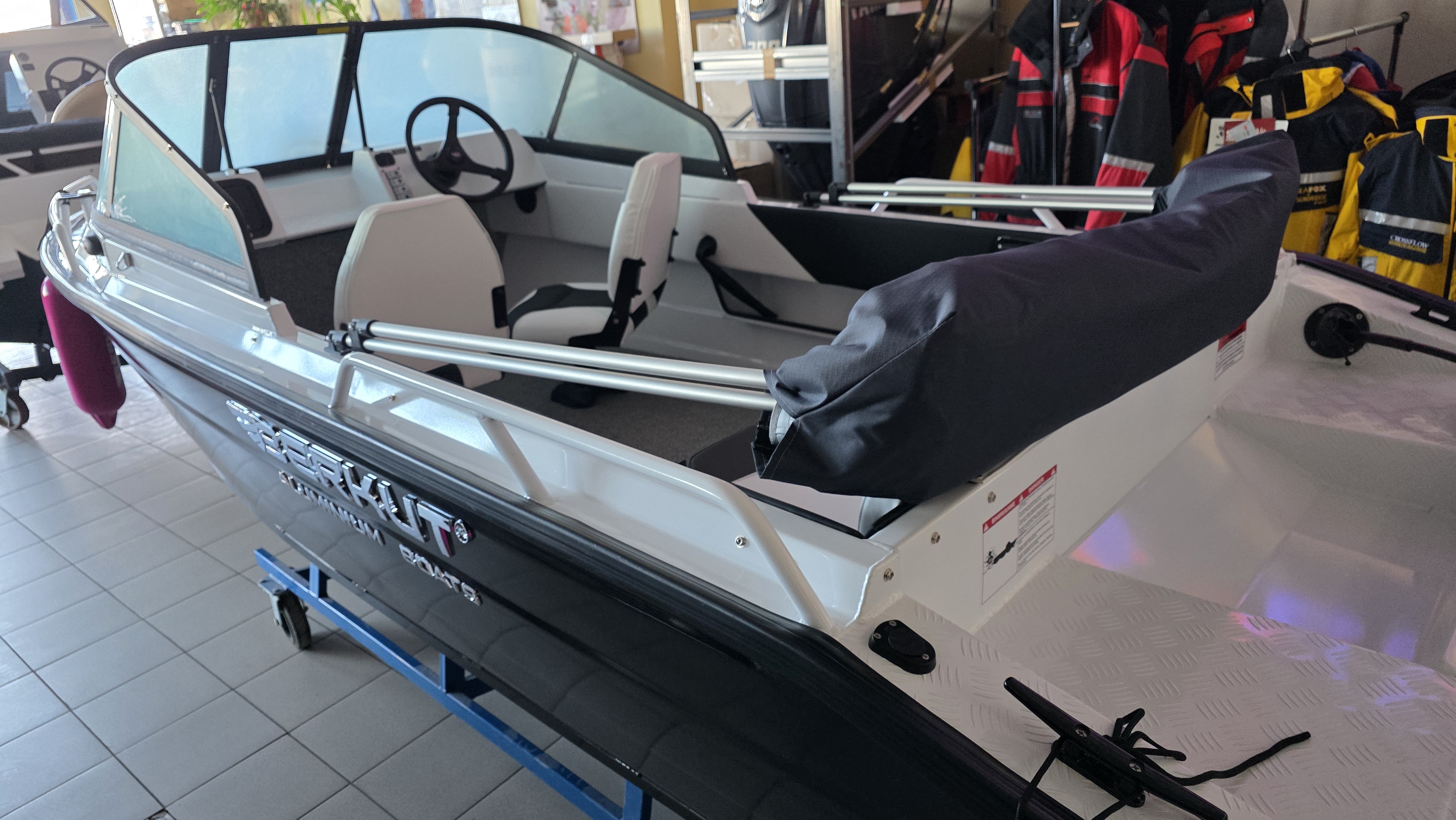 Алюминиевая лодка Беркут Berkut S-Jacket это лодка с капотной (автомобильной) компоновкой кокпита. Длина корпуса 4,3 м, а габаритная - 4,7 м. В размерном ряде Беркутов «Jacket» — капотная (закрытый нос). Материал стекла - акрил. Рассчитана на использование с подвесными двигателями мощностью от 15 до 50 л. с. Лодка выполнена в алюминиевом корпусе толщиной днища 3 мм и бортов 2 мм. Все соединения сварные, по технологии двухсторонней проварки.