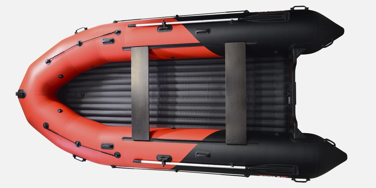 Благодаря надувному дну низкого давления НДНД, подготовка лодки для спуска на воду занимает не более 15 минут - достаточно просто накачать надувные отсеки и дно, а также установить банки и весла. Сборка лодки тоже удивит своей простотой – нужно просто открыть клапаны, стравить воздух и свернуть лодку в сумку. В собранном состоянии лодка перевозится в одной сумке, которая изготовлена в виде конверта. Помимо сумки в комплектацию надувной лодки входят : весла длиной 2 метра, банки (сиденья из ламинированной водостойкой фанеры толщиной 15 мм.), ножная помпа, ремонтный комплект с тюбиком клея и переходник под клапан.