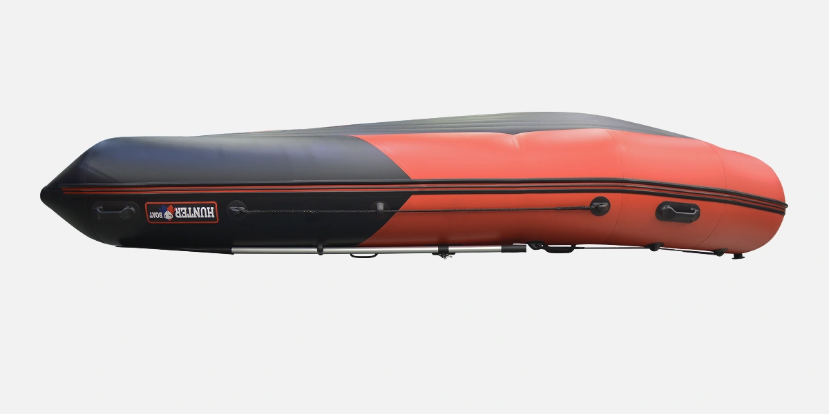 Надувная лодка Хантер 450 ПРО со стационарным вклеенным умеренно-килевым дном низкого давления (НДНД) рассчитана на использование с мотором до 30 л.с. с максимальной загрузкой до 1050 кг. Предназначена для рыбалки, охоты и активного отдыха на воде небольшой компанией. Выпускается в комбинированном красно/черном цвете.