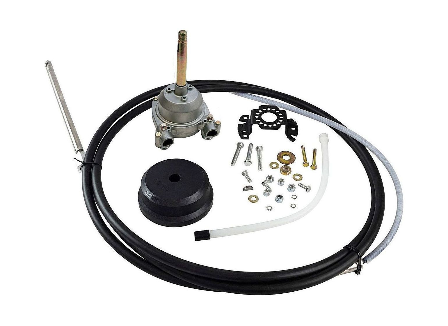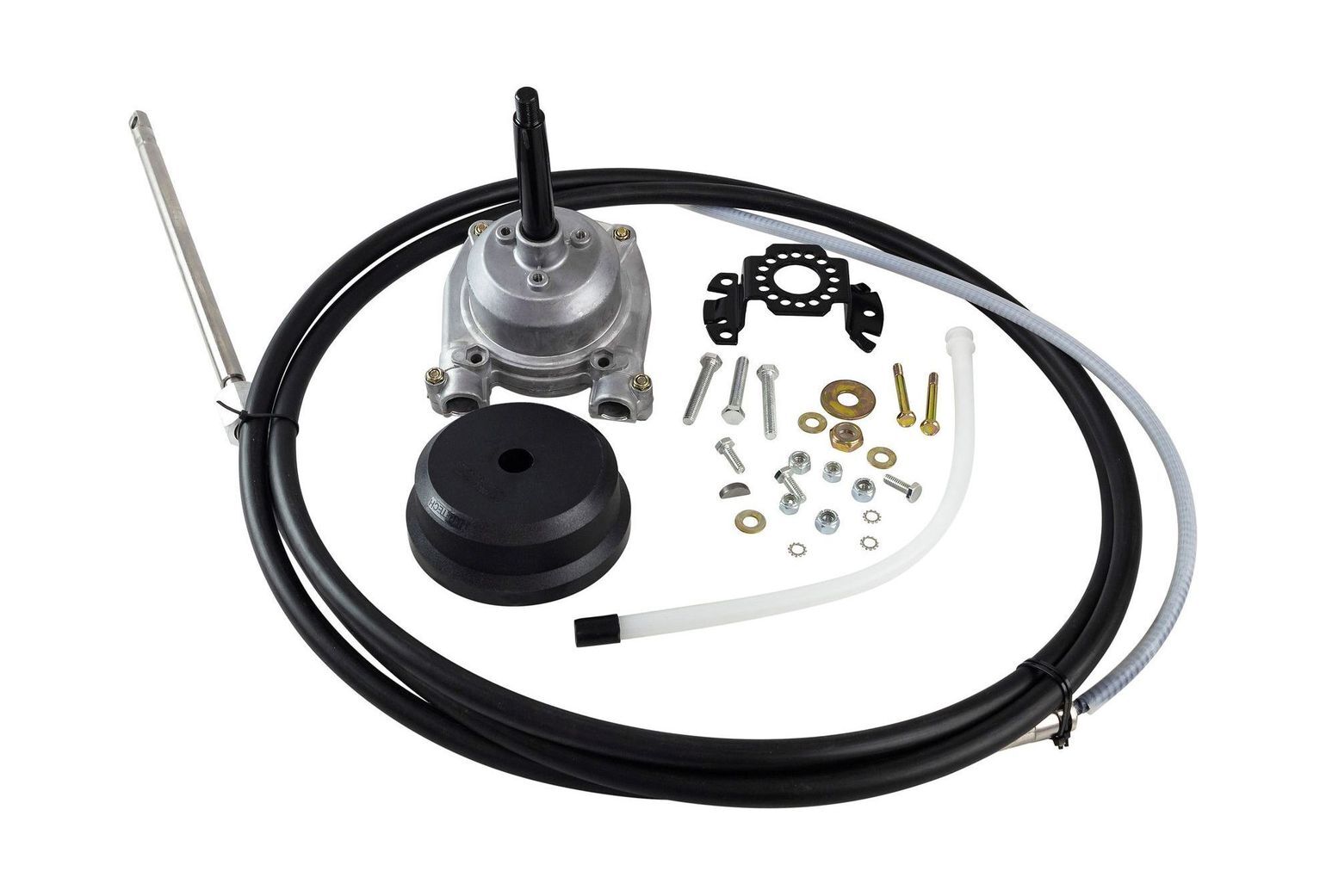 Рулевой редуктор модели ZTS с механизмом блокирования обратной связи рулевого троса. Полностью устраняет передачу реактивных моментов от двигателя на рулевое колесо. Значительно облегчает управление судном и делает этот процесс более безопасным. Центральное расположение вала обеспечивает редуктору компактные размеры. Посадка рулевого колеса стандартная конусная и совместима со всеми представленными в нашей компании рулевыми колесами. В конструкции использован планетарный механизм. По техническим характеристикам аналогичен редукторам от Teleflex. Полная перекладка руля осуществляется за 3,8 оборота. Максимальный диаметр рулевого колеса 406 мм. Соответствует требованиям ABYC, NMMA, IMCI. Установочный комплект 90 градусов входит в комплект поставки. Рекомендуется применять с рулевыми тросами компании Pretech типа 5090ХХ, 5020ХХ или тросами типа М66, Т02 и их аналогами. Поставляется в комплекте с тросом.
