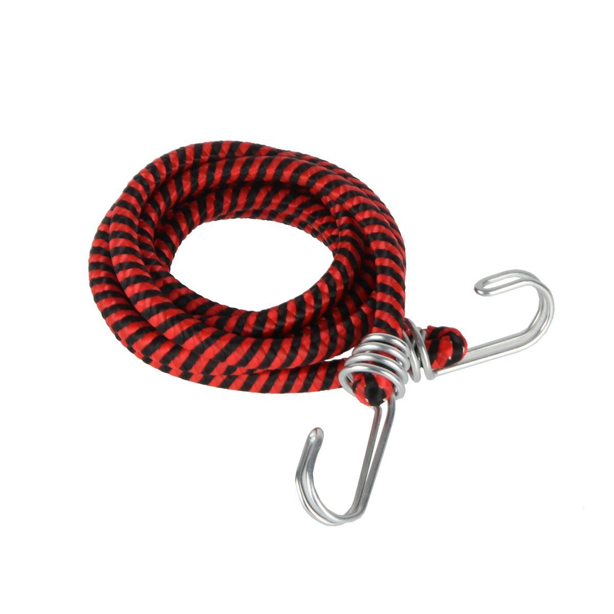 Веревка эластичная различной длины. Удобна для транспортировки груза в быту. Каждая веревка представляет собой шнур из резиновых жил в специальной оплетке. Для удобства крепления и перевозки на концах веревок присутствуют металлические крюки. Они гарантируют сохранность груза и надежность его фиксации при перевозки.
