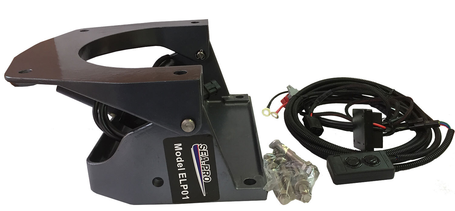 Электроподъёмник Sea-Pro ELP01 создан для изменения угла наклона двигателя, это удобно при движение по мелководью или причаливанию к берегу, вам не нужно бегать на корму что бы поднять мотор который может зацепить дно винтом или корпусом редуктора. Да и мощные моторы довольно тяжелые и их неудобно вытаскивать.