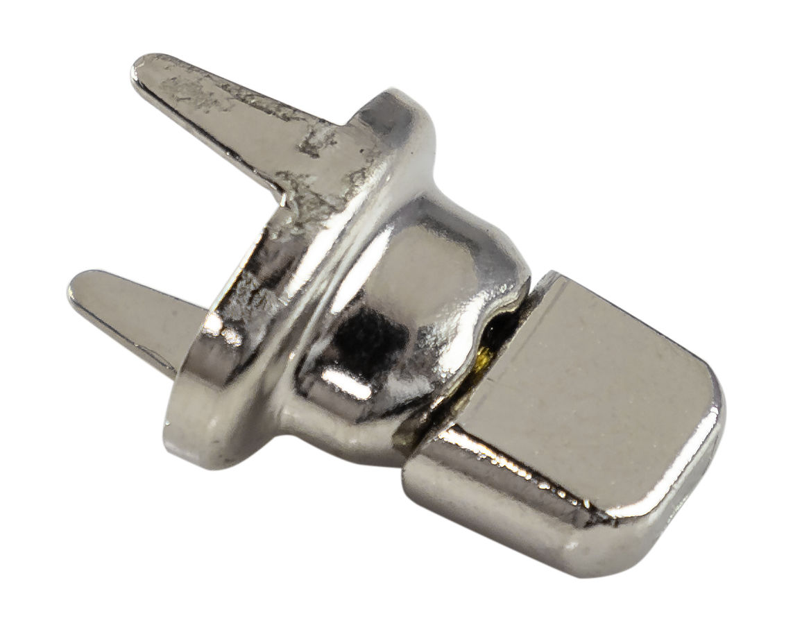 Застежка для тентов и палаток. Поворотная, из никелированной латуни. Случайное открытие исключено благодаря пружинному механизму, который держит застежку до тех пор, пока она не будет открыта вручную. Крепится при помощи двух зубцов.